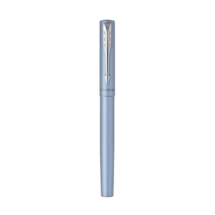 Parker Vector XL Tintenroller aus poliertem Edelstahl, mit verchromten Zierelementen und dem markentypischen Pfeilclip auf der Kappe. Mit schwarzschreibender Tinte und in einem individuellen schwarzen Etui mit Parker-Logo.Saubere, gleichmäßige Schrift, kein Überspringen, große Flüssigkeit und Intensität. Die praktische zylindrische Form und die robuste Edelstahlfeder sorgen für komfortables und präzises Schreiben und machen den Vector XL zu einem Schreibgerät, das ebenso zugänglich wie vielseitig ist.