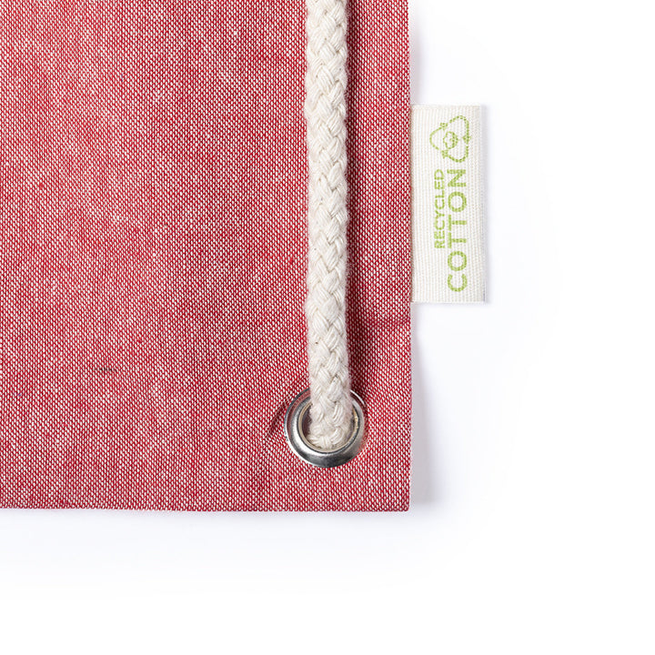 Linie Natur Rucksack mit Kordelzug aus robuster 140g/m2 Recycling-Baumwolle, mit passenden 70 cm langen Henkeln. Kordel aus ecrufarbener Baumwolle, mit verstärkten Metallringen und unverwechselbarem Etikett für recycelte Baumwolle. Erhältlich in einer breiten Palette von Farben. Belastbar bis zu einem Gewicht von 9 kg.