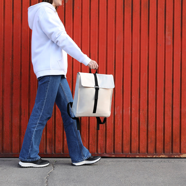 Rucksack aus weichem PU. Mit Haupttasche und Schnallenverschluss. Innenraum mit großer Kapazität und gepolstertem Fach für Laptops bis zu 14 Zoll oder Tablets bis zu 10 Zoll. Gepolsterter Rücken und Riemen. Inklusive Trolley-Gurt.