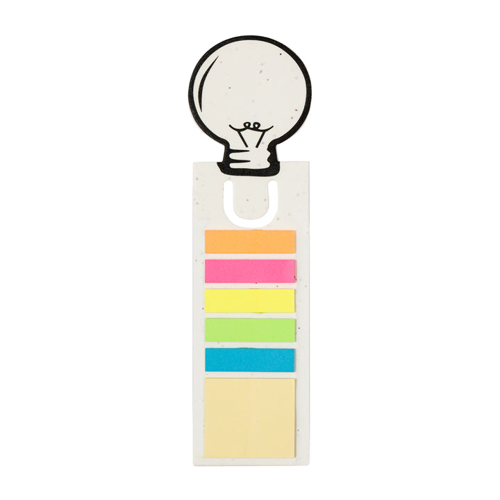 Cooles Lesezeichen aus Samenpapier mit markantem Glühbirnen-Design. Mit Haftnotizen in verschiedenen Formen und Farben: 15 Haftnotizen 4x4,5 cm in Gelb und 75 Mini-Haftnotizen 1,2x4,5 cm in fünf verschiedenen Farben. Das Papier enthält Petuniensamen und ist somit am Ende seiner Lebensdauer pflanzbar. Inklusive Pflanzanleitung auf der Rückseite und Lieferung in einer einzelnen Recycling-Papiertüte.