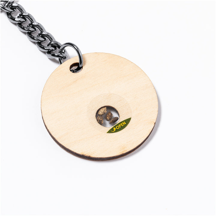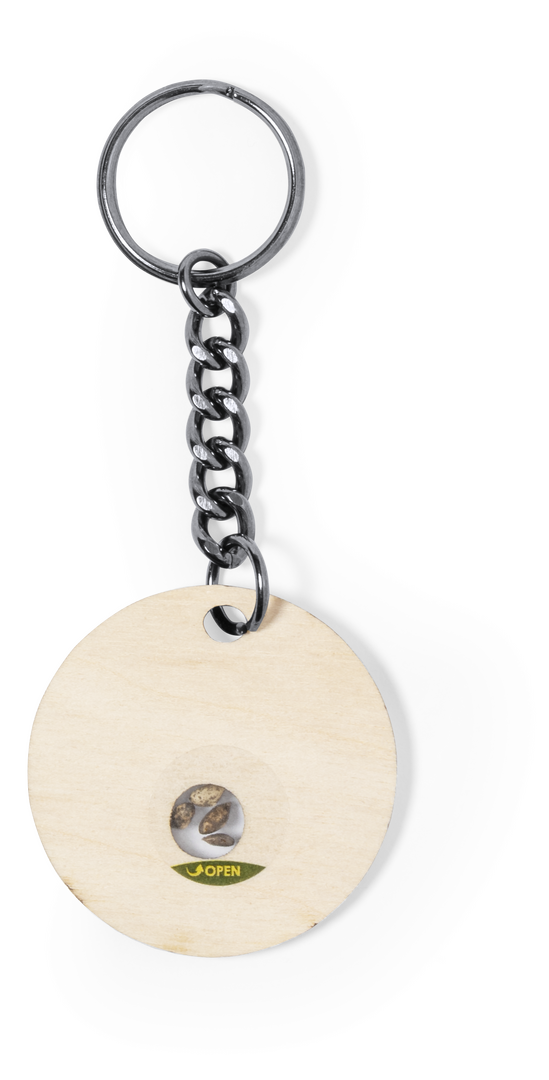 Schlüsselanhänger aus weichem und elegantem Buchenholz. Inklusive Kapsel mit Kiefernsamen. Ein respektvolles und nachhaltiges Geschenk, das den Umweltschutz fördert und unterstützt. Präsentiert in einer individuellen Kraft-Design-Box.