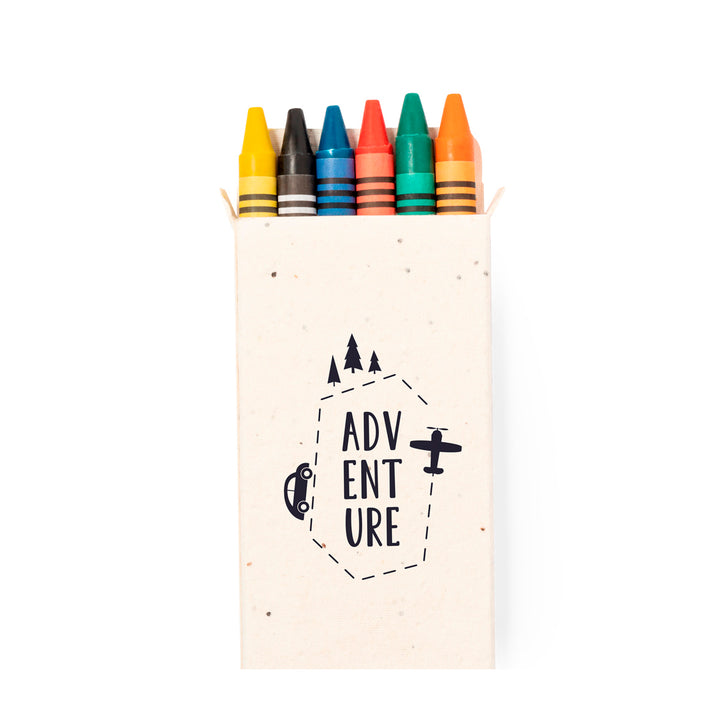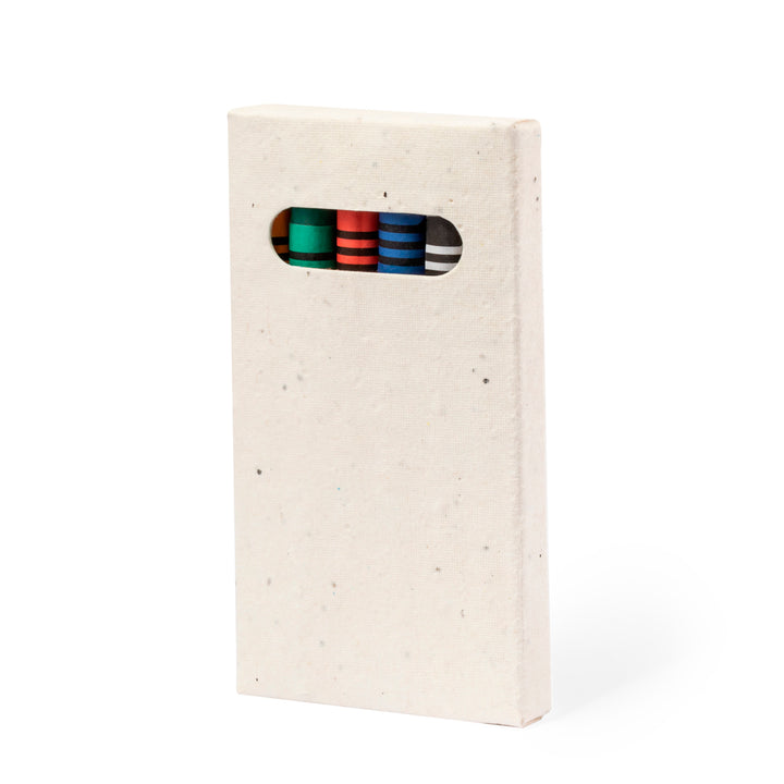 Set aus 6 Buntstiften in einer natürlichen Pappschachtel mit Samen. In der Schachtel sind Petuniensamen enthalten, so dass der Karton am Ende seiner Lebensdauer bepflanzt werden kann. Blumen in verschiedenen Farben, mit Pflanzanleitung auf der Rückseite des Umschlags.