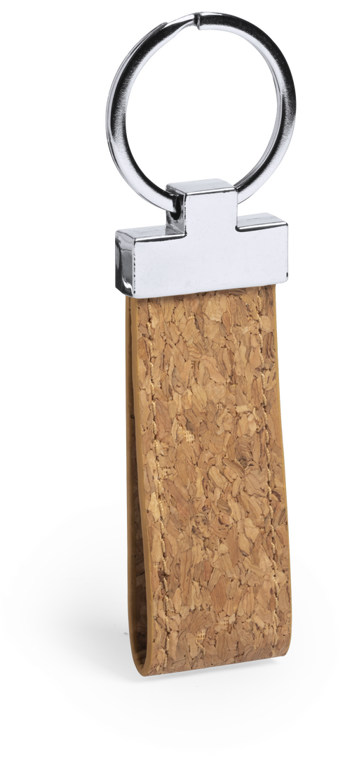 Schlüsselanhänger aus der Naturlinie aus Naturkork, mit Metallaccessoires. Präsentiert in einer individuellen, selbstschließenden Tasche mit einer Innenkarte im Öko-Design.