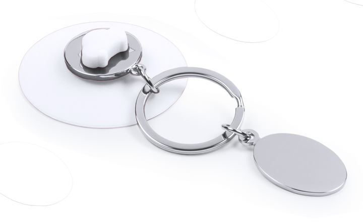 Origineller Metall-Schlüsselanhänger mit abnehmbarem Saugnapf in lebendigen Farben. Zum Aufhängen des Schlüsselbundes, einfach den Saugnapf an einer flachen Oberfläche befestigen. Mit Druckfläche aus Metall für Laserdruck.