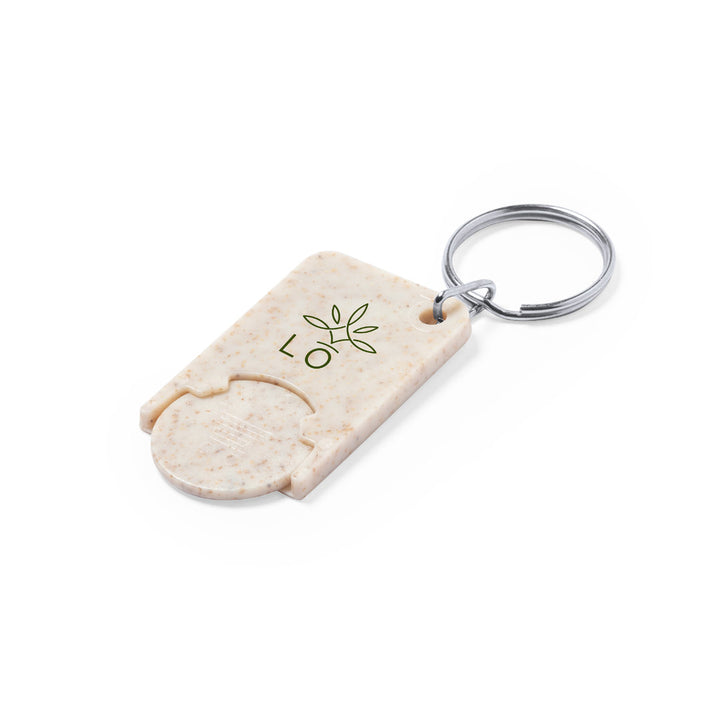 Nature Linie Münz-Schlüsselanhänger aus Weizenstroh, mit abnehmbarer Münze und verchromtem Metallring.Weizenstroh fördert die Verwendung von natürlichen Rohstoffen und reduziert den Schadstoffausstoß.