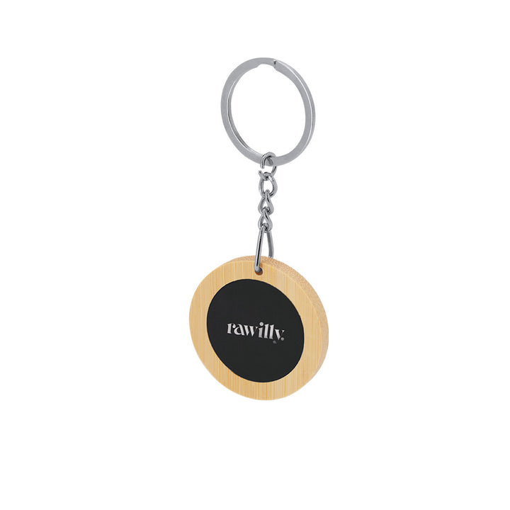 Schlüsselanhänger in Kombination aus Bambus und Metall. Mit einer gummierten Fläche, ideal für die Gravur mit Laser mit spiegelndem, silberfarbener Oberfläche.Materialien wie Bambus fördern die Verwendung von natürlichen Rohstoffen und reduzieren schädliche Emissionen. Es stammt von einer Pflanze mit hoher Festigkeit und Vielseitigkeit, die schnell wächst und sich regeneriert und eine hervorragende Alternative zur Verwendung von traditionellem Holz darstellt.