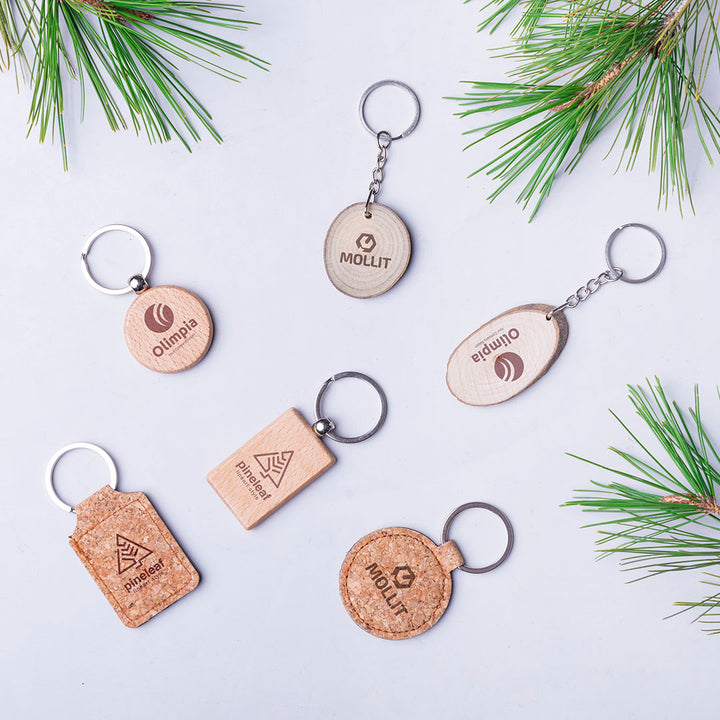 Eleganter Schlüsselanhänger der Linie Nature aus Naturkork. Mit großer Druckfläche. Erhältlich in quadratisch und rund.