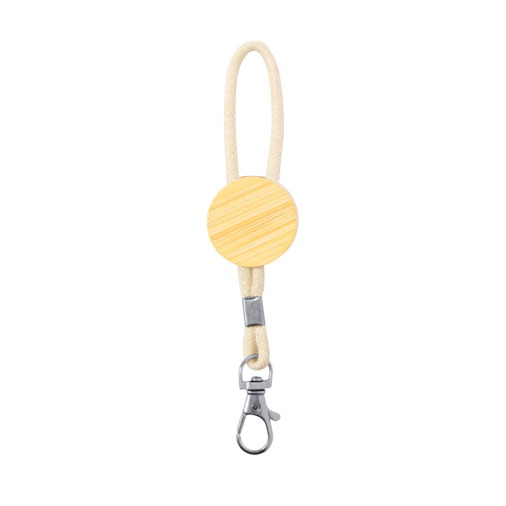 Öko-Schlüsselanhänger aus Bambus, mit Baumwollschnur. Inklusive einem runden Stück zum Branding und einem drehbaren Metallhaken. Präsentiert in einer individuellen Recycling-Papiertüte. Materialien wie Bambus fördern die Verwendung natürlicher Rohstoffe und reduzieren so den Schadstoffausstoß. Darüber hinaus stammt Bambus aus einer äußerst widerstandsfähigen und vielseitigen Pflanze mit schnellem Wachstum und Regeneration, was ihn zu einer hervorragenden Alternative zu herkömmlichem Holz macht.