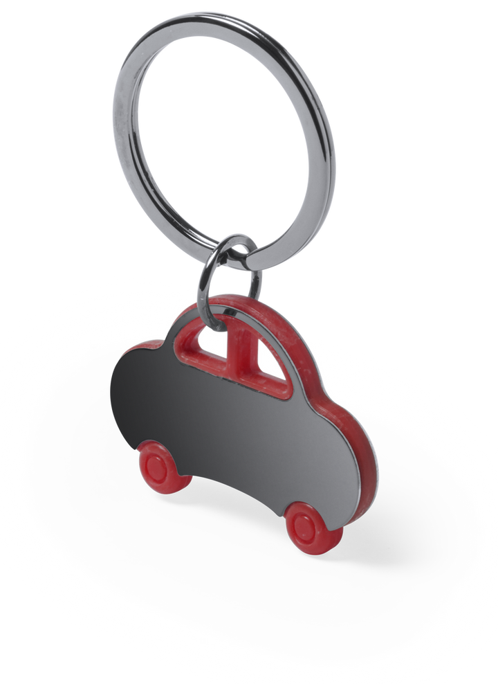 Schlüsselanhänger in Auto-Form aus Edelstahl. Mit zweifarbigem Design in einer Vielzahl von Farben.