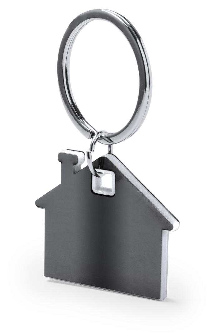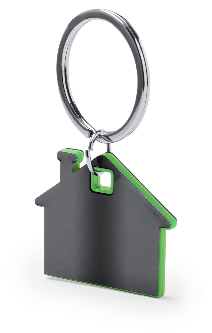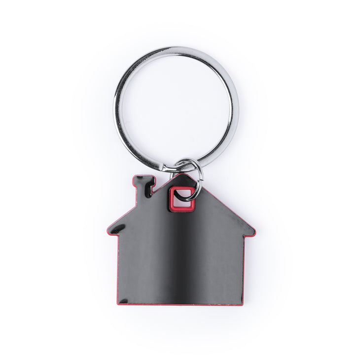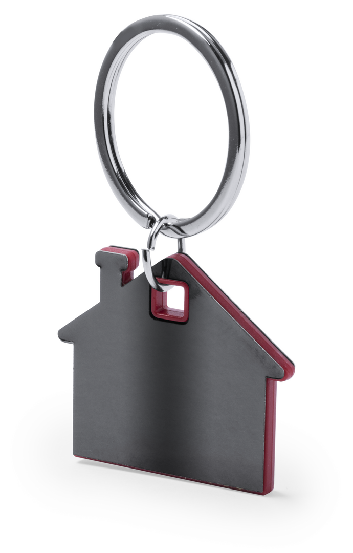 Schlüsselanhänger aus Edelstahl mit originellem Haus-Design. Außen in einem ansprechenden Grauton und innen in einer Vielzahl von lebendigen Farben. Präsentiert in einem individuellen Beutel mit Kartoneinlage in elegantem Silber.