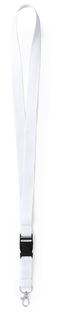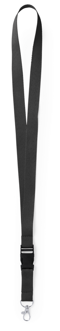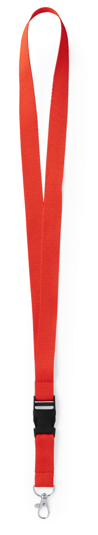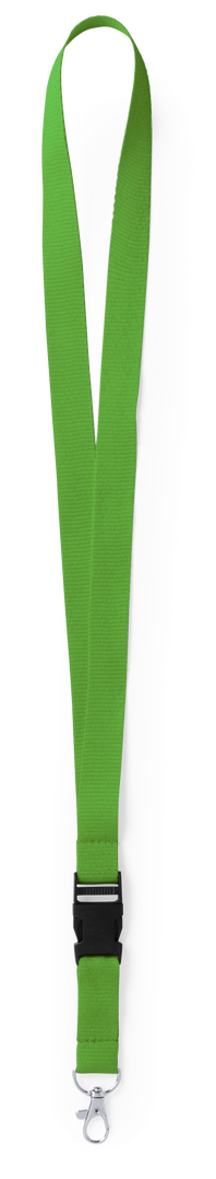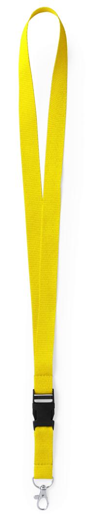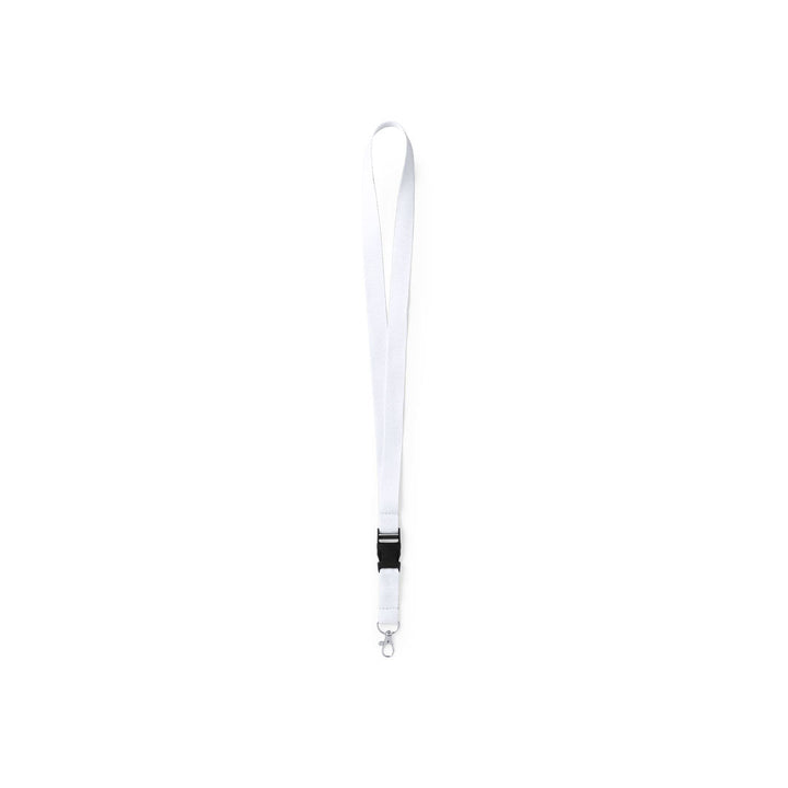 Schlüsselband aus widerstandsfähigem Polyester mit Multifunktionsschnalle und Metallhaken. Erhältlich in einer großen Auswahl an lebendigen Farben.