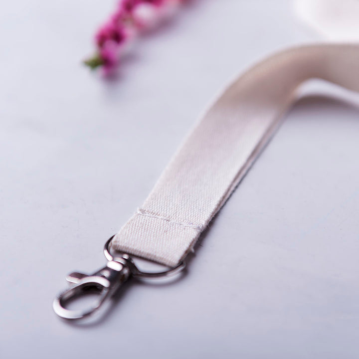 Lanyard der Linie Nature aus 100 % Baumwolle in Naturfarbe. Mit Metallkarabiner.