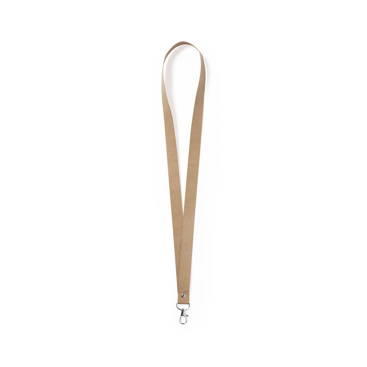 Natur Linie Lanyard aus stabilem Recyclingkarton. Mit drehbarem Metallkarabiner.