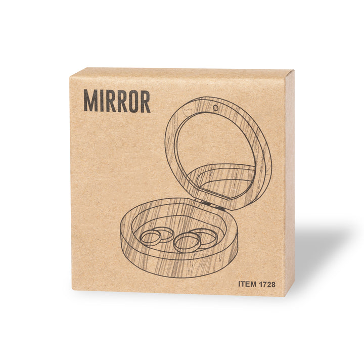 Linie Natur Schmuckkästchen mit Bambusgehäuse. Mit 1X Spiegel innen und Magnetverschluss. Präsentiert in einer individuellen Kraft-Design-Box.