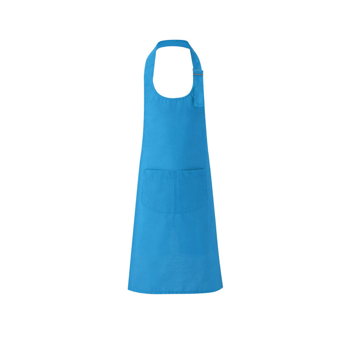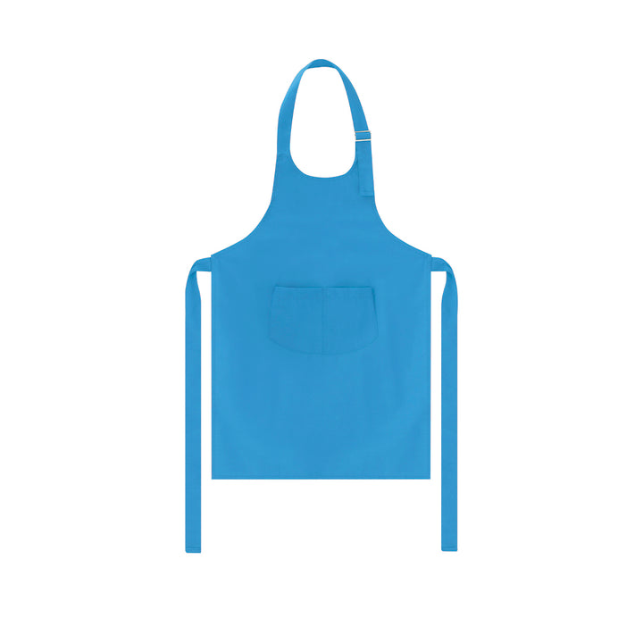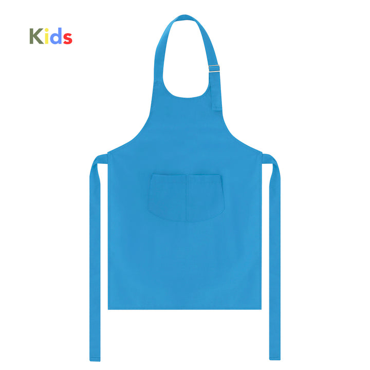 Hochwertige Kinder-Schürze, hergestellt aus einer Kombination aus Baumwolle und Polyester. Mit praktischer doppelter Fronttasche und Nackenbändern mit chromatischem Versteller. Mit einem Schnitt, der unter dem Knie endet, bietet sie ausgezeichneten Schutz.