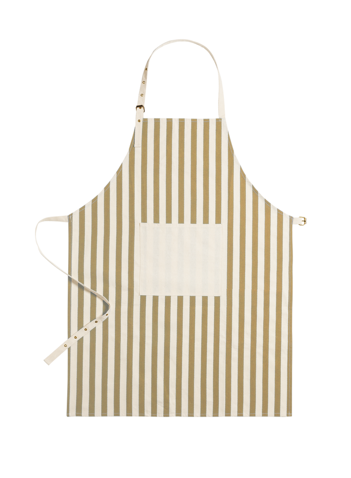 Schürze der Linie Natur aus 100% Bio-Baumwolle, die mit nachhaltigen Methoden angebaut wird, ohne Insektizide, Düngemittel oder andere Chemikalien, wodurch die Pflege der Umwelt begünstigt wird. Innovatives, vertikal gestreiftes Design, mit naturfarbener Fronttasche, die bis unter das Knie reicht. Verstellbar, mit Riemen an Hals und Taille. Unverwechselbares Etikett aus Bio-Baumwolle.