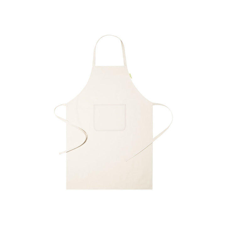 Schürze aus 100 % Bio-Baumwolle, mit Fronttasche und Verstellriemen. Reicht bis zu den Knien hin. Umweltfreundliches Etikett, das die Kennzeichnung von Bio-Baumwolle auszeichnet.
