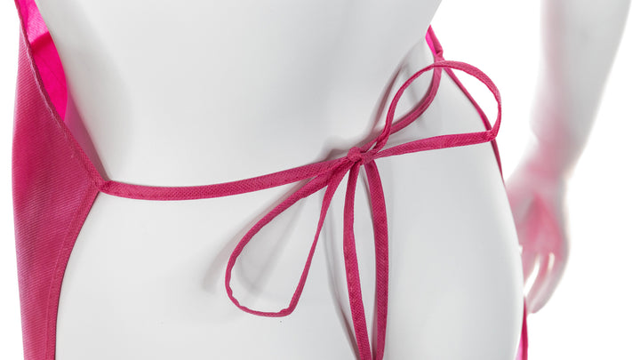 Non-Woven-Schürze aus Faservlies in einer Vielzahl von kräftigen Farben. Mit Fronttasche und Bändern zum Einstellen sowie Schlitz über dem Knie.