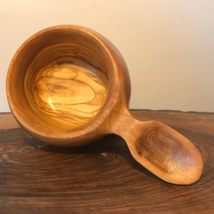 Der Olivenbaum ist ein uraltes Symbol für Beständigkeit und Weisheit, der seit Jahrhunderten in vielen Kulturen verehrt wird. Diese Kuksa, mit einer Kapazität von 150-200 ml, kombiniert die einzigartige Maserung des Olivenholzes mit der Haltbarkeit eines traditionellen Naturmaterials. Die natürliche Öl- und Wachsbehandlung schützt das Holz und garantiert eine lange Lebensdauer. Mit seinem historischen Erbe und der sorgfältigen Handarbeit bietet diese Kuksa ein besonders wertvolles und authentisches Trinkerlebnis.