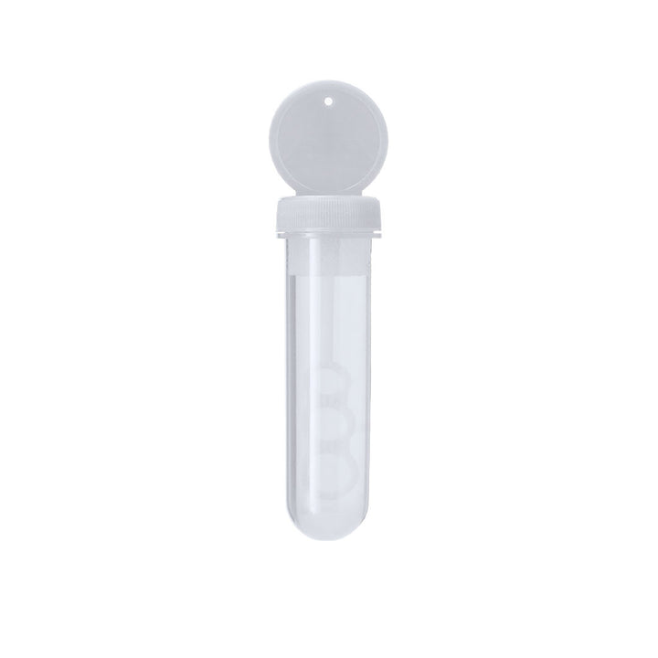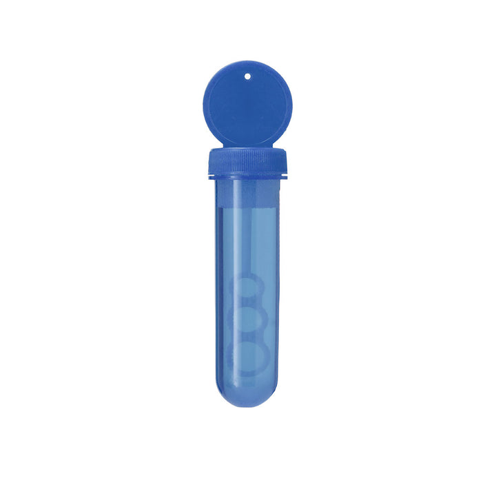 Seifenblasenmaschine mit speziellem Applikator, die Blasen in 3 Größen erzeugt. Flüssigkeit enthalten (30 ml). Mit festfarbigem Deckel und transluzentem Körper.