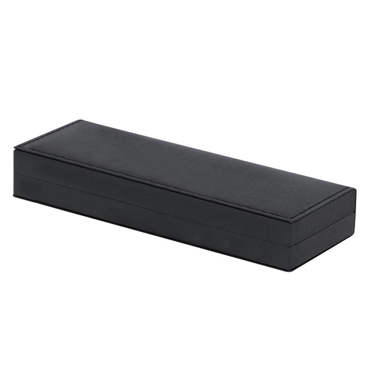 Unverwechselbares Kugelschreiber- und Rollerball-Set, beide mit eleganten mattschwarzen Aluminiumgehäusen und roségoldenen Zierelementen. Texturierte Grifffläche für einfachen Halt und Metallclip. Kugelschreiber mit Drehmechanismus und Rollerball mit Kappe, beide mit blauer Tinte und Jumbo-Patrone. Präsentiert in einem eleganten, schwarzen Etui in Lederoptik, weiß innen.