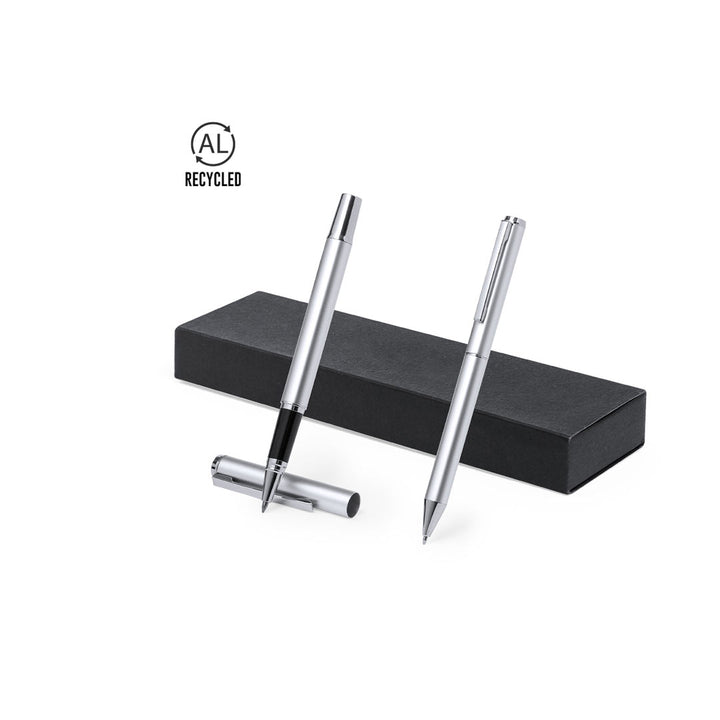 Das Set Darma vereint Eleganz und Umweltbewusstsein in einem hochwertigen Schreibset. Es besteht aus recyceltem Aluminium, einem Material, das sich durch seine außergewöhnliche Recyclingfähigkeit auszeichnet und zugleich seine ursprünglichen Eigenschaften bewahrt. Die Produktion von recyceltem Aluminium benötigt weniger Energie, was es zu einer nachhaltigen Wahl für umweltfreundliche Produkte macht.
