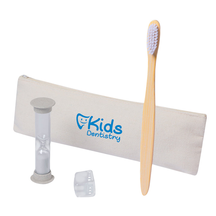 Zahnbürsten- und Sanduhr-Set aus Bambus und Weizenstroh. Inklusive Zahnbürste mit ergonomischem Griff aus weichem Bambus, mit Schutzhaube. Außerdem inklusive einer 2-Minuten-Sanduhr aus Weizenstroh. Präsentiert in einem praktischen Etui aus atmungsaktiver Baumwolle. Weizenstroh fördert die Nutzung natürlicher Rohstoffe und reduziert so den Schadstoffausstoß.