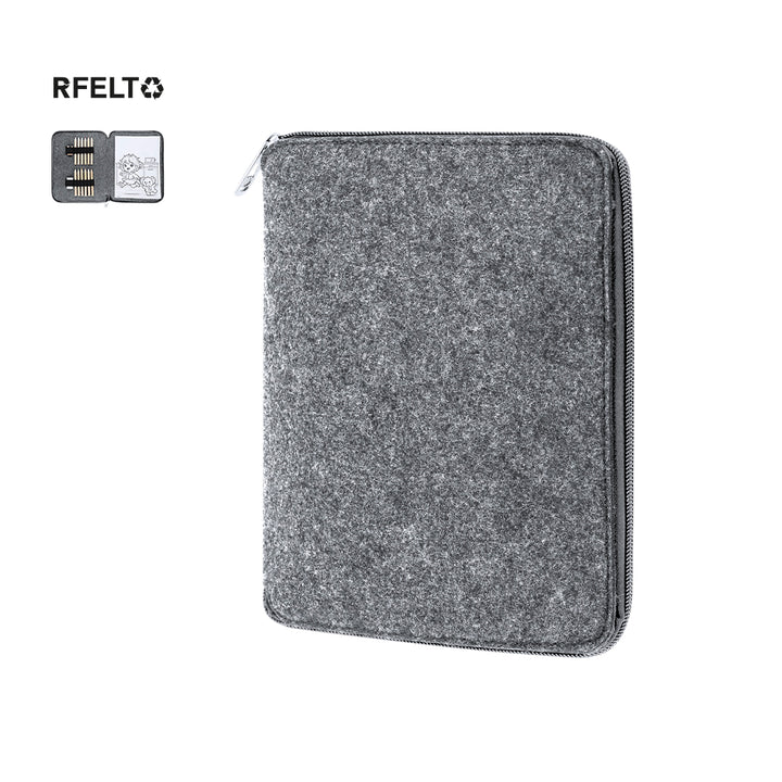Set aus Buntstiften in einer Hülle aus RPET-Filz. Enthält 11 Buntstifte in verschiedenen Farben in hexagonaler Form, 1 Radiergummi, 1 Holzspitzer und 60 Blätter mit lustigen schwarz-weiß Designs zum Ausmalen. Präsentiert in einer praktischen Hülle mit Reißverschluss in zwei Farben und einem Innenteil mit elastischen Bändern zur Organisation der Zubehörteile. Mit Kennzeichen für RPET.RPET-Filz entsteht durch die Kombination des Recyclingprozesses von Kunststoffmaterialien mit der jahrhundertealten Technik der Filzherstellung und ergibt ein eco-trend Material, das nicht nur recycelten Ursprungs ist, sondern auch recycelbar wird.