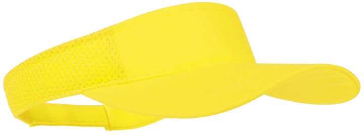 Visier aus Polyester in lebendigen Farben, mit verstellbarem Klettverschluss und gepolsterten Seiten mit atmungsaktiven Netzeinsätzen.