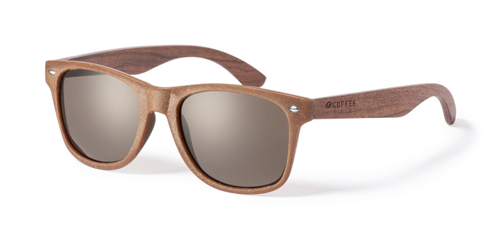 Gafas de sol de línea nature con protección UV 400. Montura fabricada en fibra de café y patillas en madera natural a juego, con lentes en tono marrón. Distintivo fibra de café inyectado en molde de patilla izquierda. Presentación en caja individual de diseño kraft.La fibra de café es una solución circular que se obtiene de la utilización de los residuos producidos en la obtención del café. Una alternativa sostenible que favorece la reducción del uso de plásticos, ahorrando energía en su proceso de fabricación y contribuyendo al cuidado del medio ambiente.