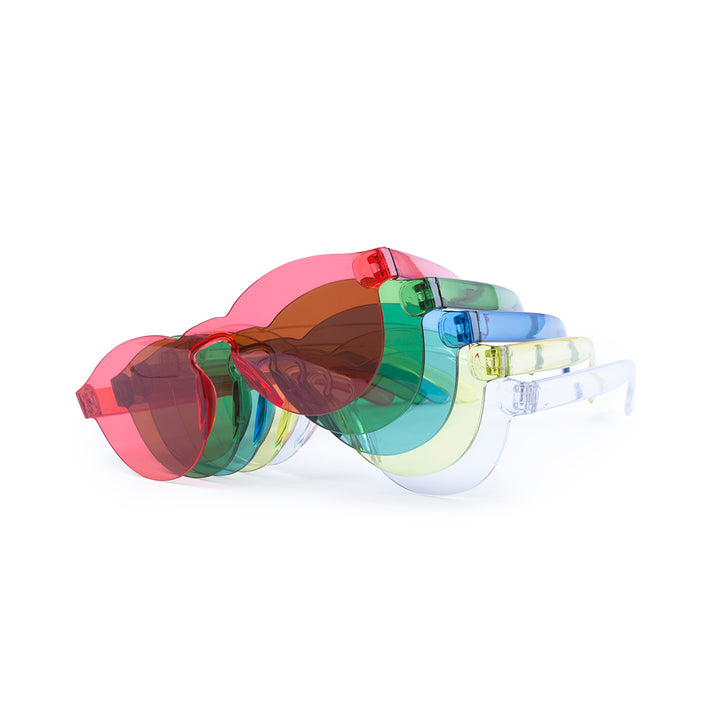 Originelle Trend-Sonnenbrille mit halbtransparentem, monochromem Design. Rahmenlose Gläser mit UV-400-Schutz und passenden Bügeln.