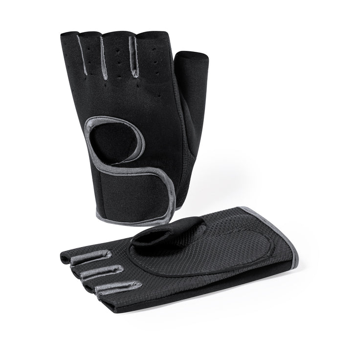 Sporthandschuhe aus weichem Polyester und Neopren-Lycra, einer Stoffkombination, die eine zweite Haut bildet, die sich der Hand anpasst, mit Klettverschluss am Handgelenk. Diese Handschuhe sind dank ihrer hervorragenden Atmungsaktivität, die durch das offene Fingerdesign und die Wärmeableiter am oberen Teil erreicht wird, die zudem eine raue Oberfläche für optimalen Halt haben, für jede Disziplin bequem. Erhältlich in Schwarz mit grauen Nähten, in den Größen SM und L-XL. Präsentiert in einer recycelten Tasche.