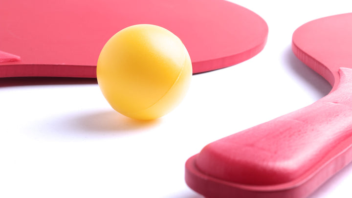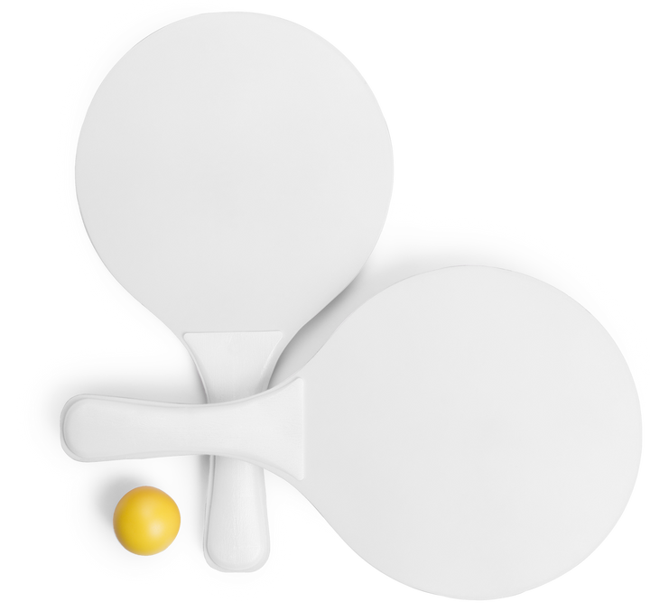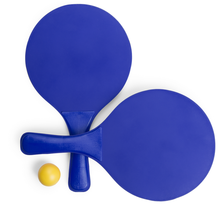 Hochwertiges Beachball-Set mit zwei Schlägern aus Naturholz in verschiedenen kräftigen Farben. Mit verstärktem Griff. Präsentiert in einer Netztasche mit Ball.