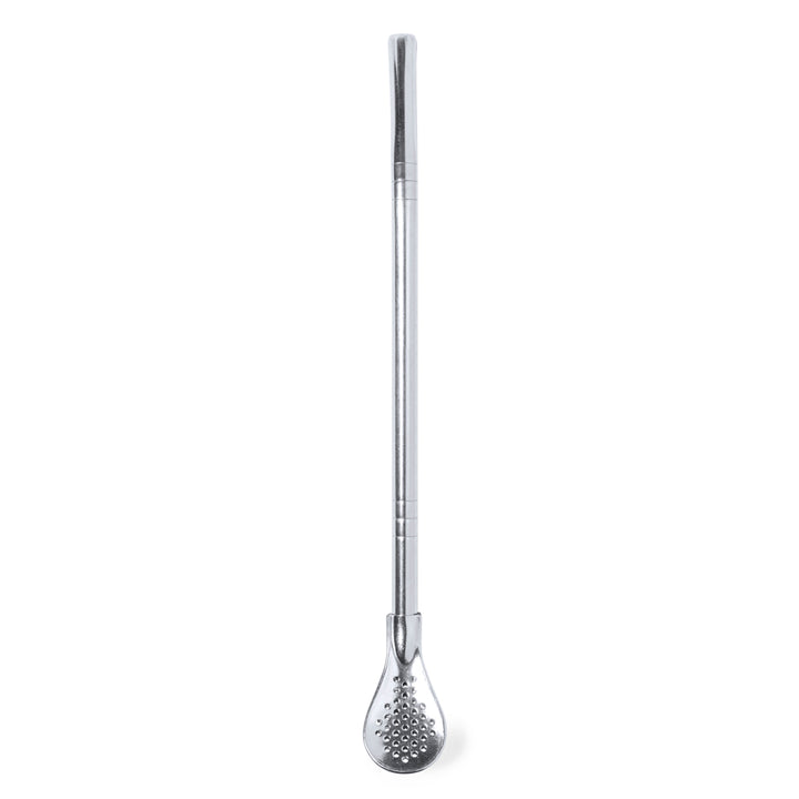 Nützlicher Rührer aus Edelstahl mit Strohhalm. Mit seinem eleganten und funktionalen Design ist dieses Accessoire unverzichtbar für heiße oder kalte Getränke. Integrierter Strohhalm zum einfachen Trinken und ein praktischer Löffel mit Filter an einem Ende. Präsentiert in einer individuellen Tasche.