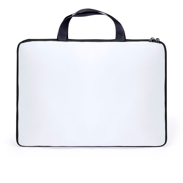 Praktische Hülle für Laptops bis 15 Zoll, hergestellt aus Softshell. Speziell für den beidseitigen Sublimationsdruck entwickelt. Reißverschluss mit Doppelschieber in schwarzer Farbe und zwei Tragegriffen. Präsentiert in einer einzeln recycelten Tasche.