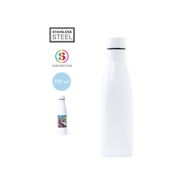 Hergestellt aus hochwertigem rostfreiem Stahl, ist die Flasche besonders robust und langlebig. Ihre glänzende weiße Oberfläche ist ideal für eine individuelle Gestaltung, sei es durch einen persönlichen Aufdruck oder kreative Designs. Dank des speziellen Sublimationsdruckverfahrens bleibt die Farbe lebendig und widerstandsfähig über lange Zeit.