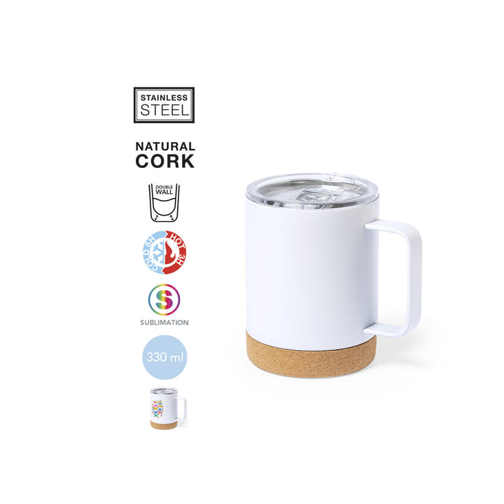 Die Sublimations-Wärmetasse Wifly ist ein innovativer Thermobecher, der durch seine hohe Qualität und das stilvolle Design überzeugt. Er besteht aus rostfreiem Stahl und ist mit Kork kombiniert, was ihm eine besondere Ästhetik verleiht und gleichzeitig für eine rutschfeste Stabilität sorgt.