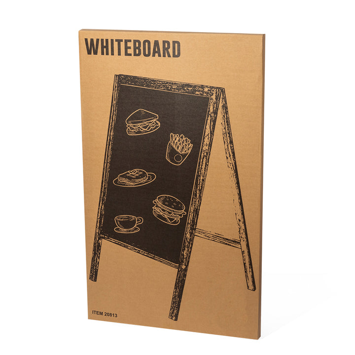 Mehrzwecktafel aus Holz. Passt in jede Umgebung und ist dank der Faltbarkeit leicht zu transportieren. Beidseitig große Schreibfläche mit einer Gesamtgröße von 106 cm Höhe und 59 cm Breite. Präsentiert in einer Kraft-Design-Box.