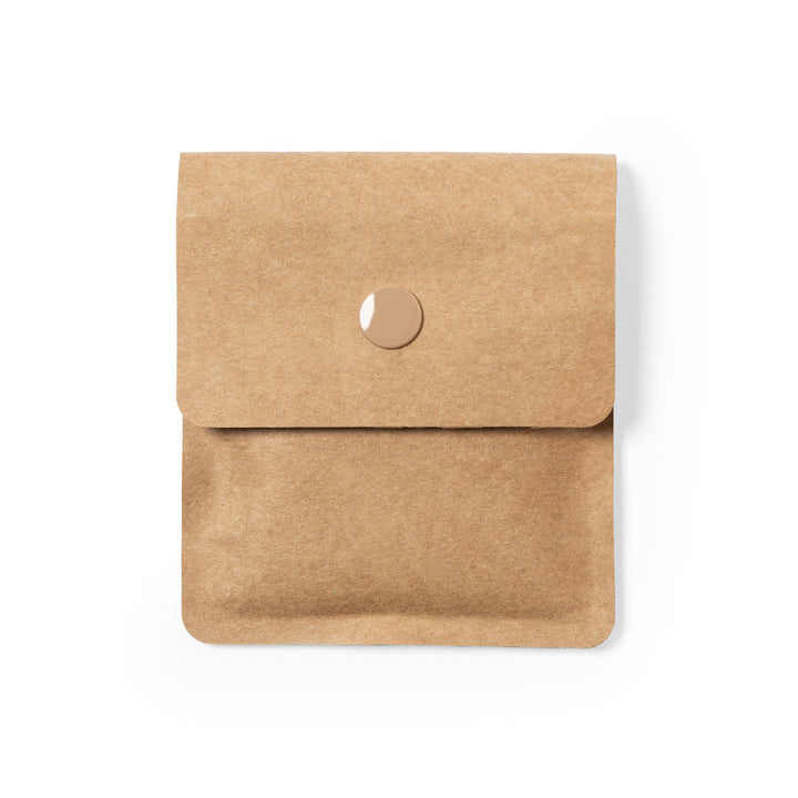 Linie Natur Taschenaschenbecher, außen mit laminiertem Recyclingpapier und innen aus feuerfestem Aluminium. Klappe mit passendem Haken- und Ösenverschluss.