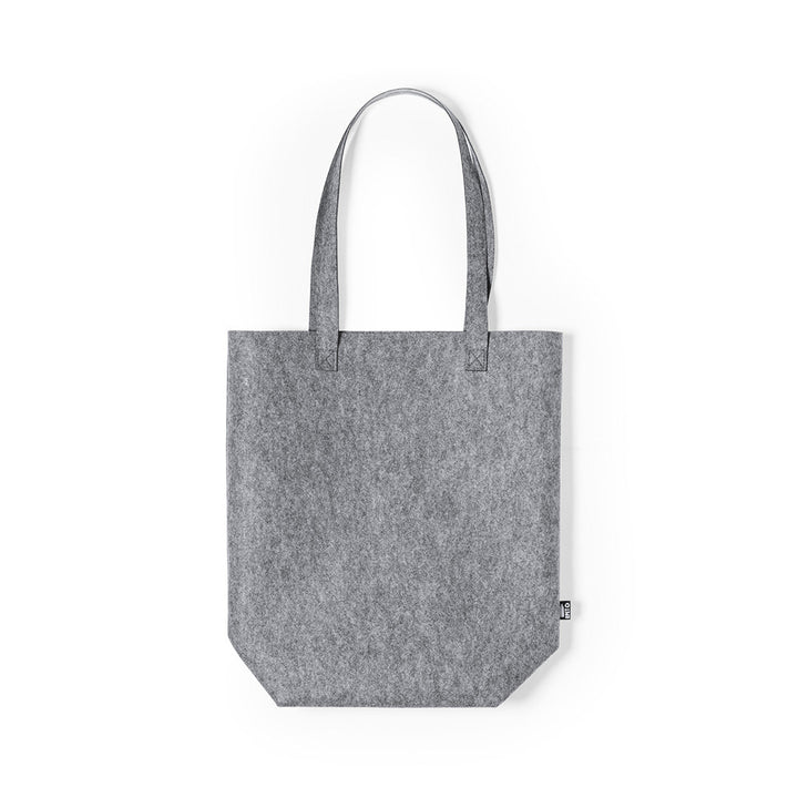 Linie "Natur" Tasche aus widerstandsfähigem, recyceltem RPET-Filz. Das Ergebnis der Kombination der Recyclingprozesse von Kunststoffen mit der jahrtausendealten Technik der Filzherstellung ist ein Öko-Trendmaterial, das nicht nur recycelt, sondern auch wiederverwertbar ist. Rechteckiges Design, mit Zwickel am Boden, extra langen und extra breiten verstärkten Griffen (70 x 3,5 cm). Widerstandsfähigkeit bis zu 6 kg, mit RPET-Emblem auf dem Außenetikett.