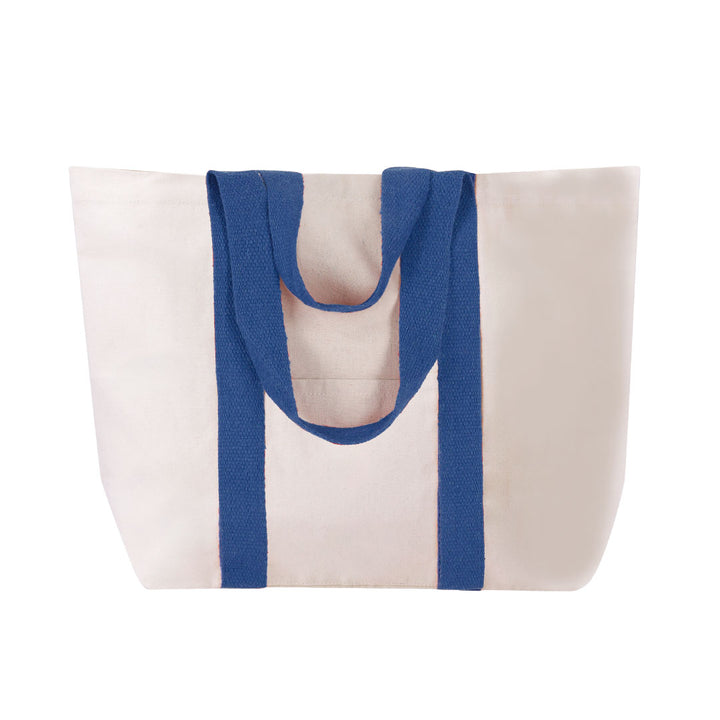 Tasche aus widerstandsfähiger 280g/m2 Baumwolle. Abgenäht, mit Knopfverschluss, Zwickel und verstärkten Griffen von 60 cm Länge, erhältlich in verschiedenen Farben. Mit einer leicht zugänglichen Außentasche und einer Innentasche mit Reißverschluss. Widerstandsfähig bis zu einem Gewicht von 10 kg.