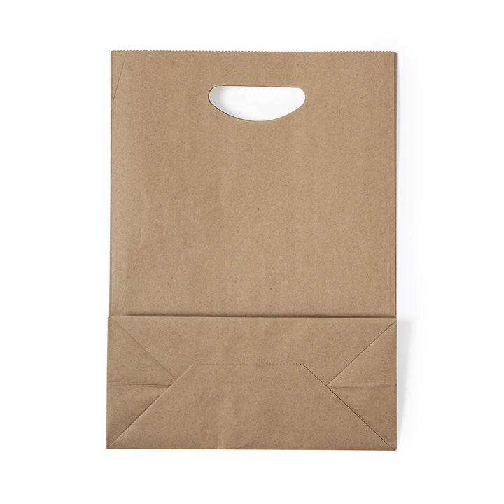 Linie "Natur" Leichtgewichtige Tasche aus 80 g/m2 Recyclingpapier. Mit originell gestanztem Griff und Bodenfalte.