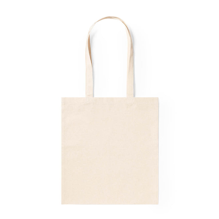 Tasche aus 100% Baumwolle mit naturfarbener Oberfläche. Mit 70 cm langen Henkeln und Steppnähten. Belastbar bis zu einem Gewicht von 7 kg.