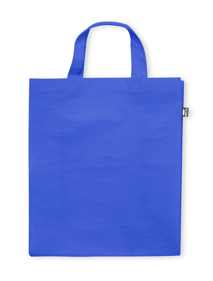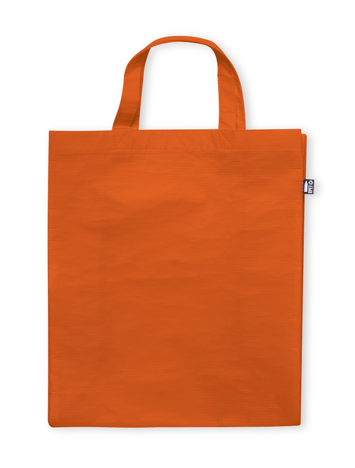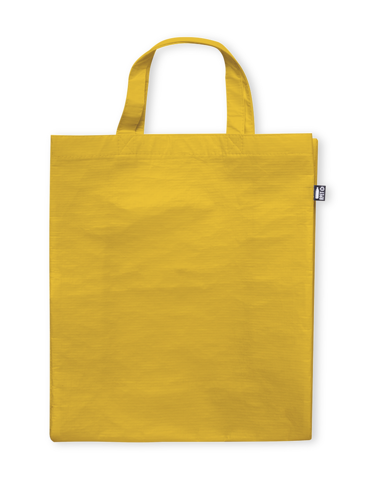 Natur Linie Tasche aus 110g/m2 laminiertem RPET. Genäht, mit Zwickel und kurzen, verstärkten Griffen (35 x 2,5 cm). Erhältlich in einer breiten Farbpalette, Außenetikett mit RPET-Logo. Belastbar bis zu einem Gewicht von 5 kg.Das RPET-Material wird aus recyceltem Kunststoff hergestellt, um die Wiederverwendung von Kunststoffabfällen zu fördern und zur Nachhaltigkeit unseres Planeten beizutragen.