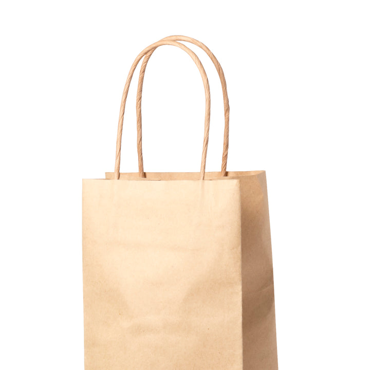 Tüte aus Papier (100 g/m2) in Naturfarbe mit kurzen, verstärkten Griffen und Zwickel. Speziell für Flaschen von bis zu 1 Liter entwickelt.