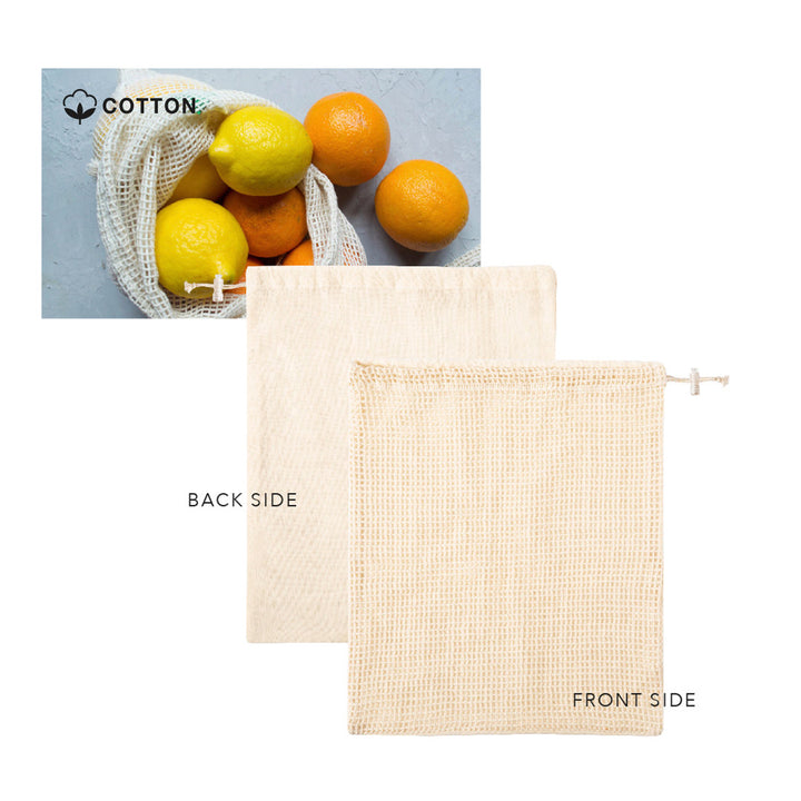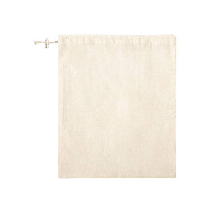 Naturlinie Netzbeutel aus roher Baumwolle 120g/m2, mit einer flachen Seite zum Bedrucken. Schnurverschluss mit Einstellzubehör.