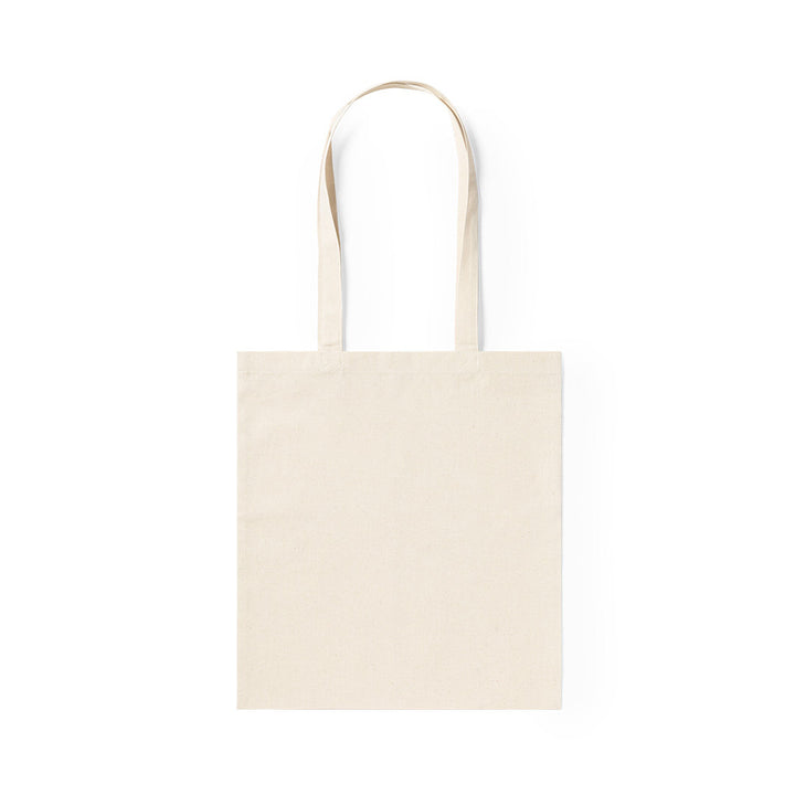 Tasche aus 100 % Baumwolle, 240 g/m2, in natürlicher Farbe. Mit 70 cm langen verstärkten Griffen und genähter Oberfläche. Widerstandsfähigkeit bis zu 9 kg Gewicht