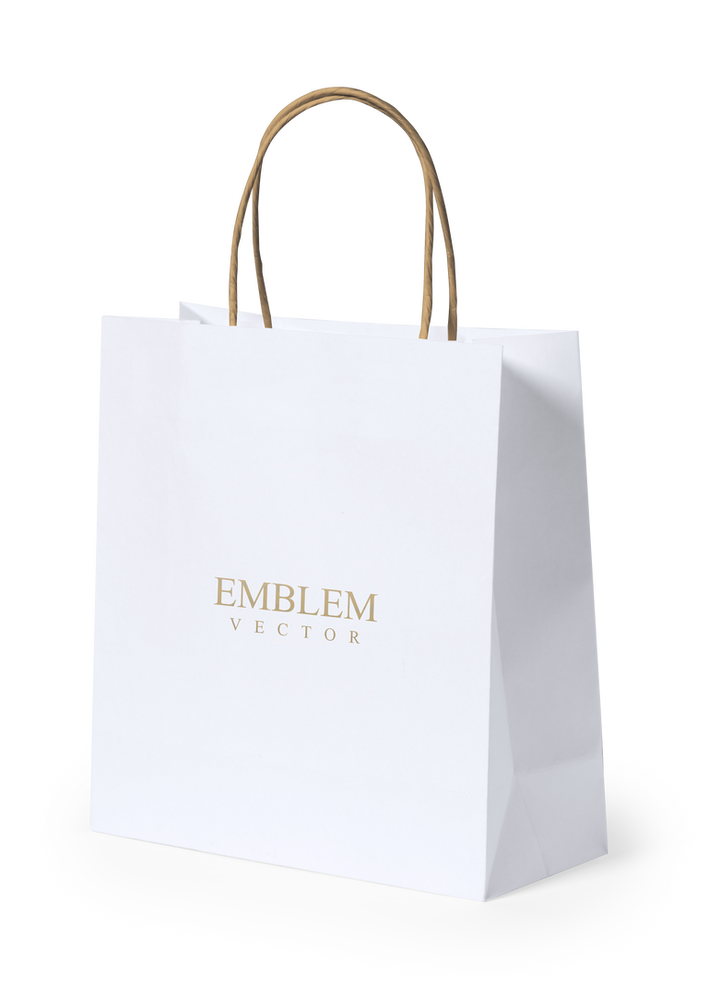 Natur Linie Tasche aus 100 g/m2 Recyclingpapier in weißer Ausführung, mit kurzen, verstärkten Griffen in Naturfarbe und Zwickel. Widerstandsfähig bis zu einem Gewicht von 6 kg.