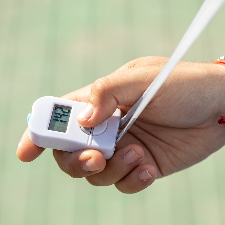 Digitaler Handkontrollzähler, hergestellt aus haltbarem ABS-Material mit glänzender Oberfläche. Praktisches Polyester-Lanyard und breite Zählerknöpfe zum Hinzufügen oder Entfernen von Zählwerten. Digitaler LCD-Bildschirm mit 4-stelligem Zählwerk und Reset-Taste an der Oberseite. Große Werbefläche, speziell für den Tampondruck ausgelegt. Präsentiert in einer attraktiven Design-Box. Batteriebetrieben, inklusive Knopfbatterie.
