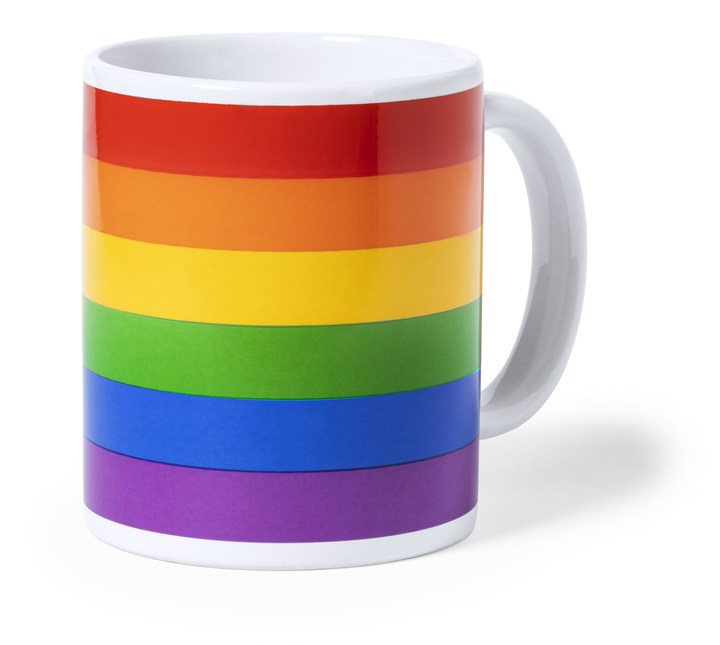 Regenbogenbecher mit einem Fassungsvermögen von 370 ml, aus Keramik und mit einem mehrfarbigen Design. Eine Tasse, auf die Sie stolz sein können, präsentiert in einer individuellen Kraftbox.